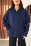Lacivert Oversize İçi Polar ve Fermuar Detaylı Kapüşonlu Kadın Sweatshirt