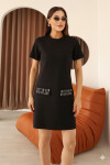 Vizon Süet Bisiklet Yaka Cepleri Taş İşlemeli Diz Üstü Kadın Elbise