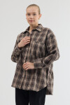 Kahve Oversize Kesim Uzun Kol Düğme ve Cep Detaylı Ekose Gömlek