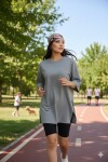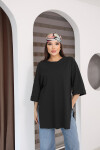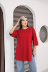 Moviment Kadın Standart Beden Duble Kol Yandan Yırtmaçlı Mavi T-shirt